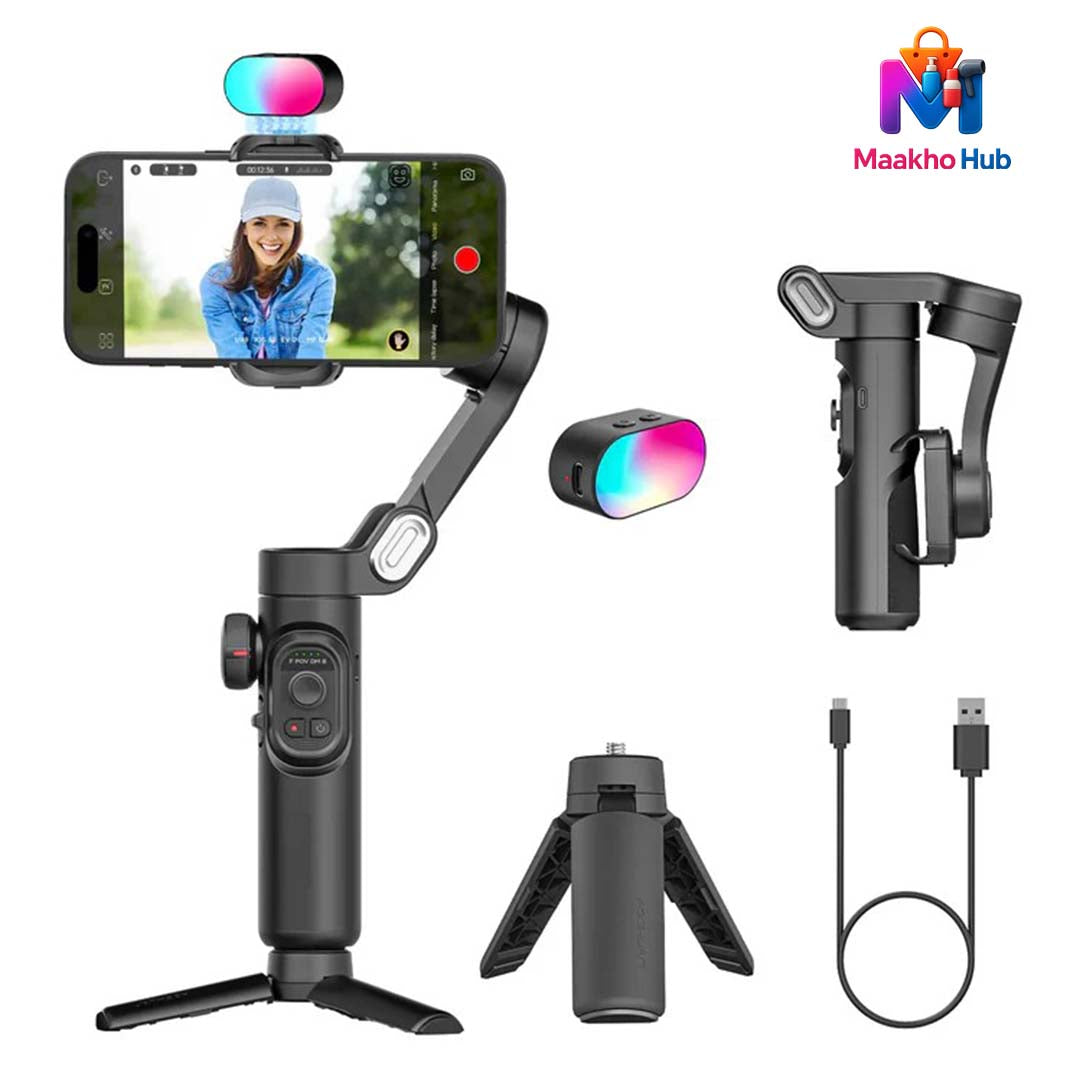 Palm-Size 3-Axis Foldable Smartphone Gimbal with RGB Light – Perfect for TikTok & Vlogging